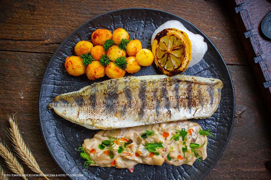 Dania z ryb słodkowodnych: karpia, sandacza, amura serwujemy w Karczmie i Hotelu Górecznik***. Karpia pochodzącego z certyfikowanego znakiem DB Poleca Gospodarstwa Rybackiego z Możdżanowa serwujemy przez cały rok. Gościom Karczmy proponujemy tę rybę w zestawach, które mogą skomponować sami. Wystarczy, że do kawałka ryby dobiorą swoje ulubione dodatki oraz sosy.