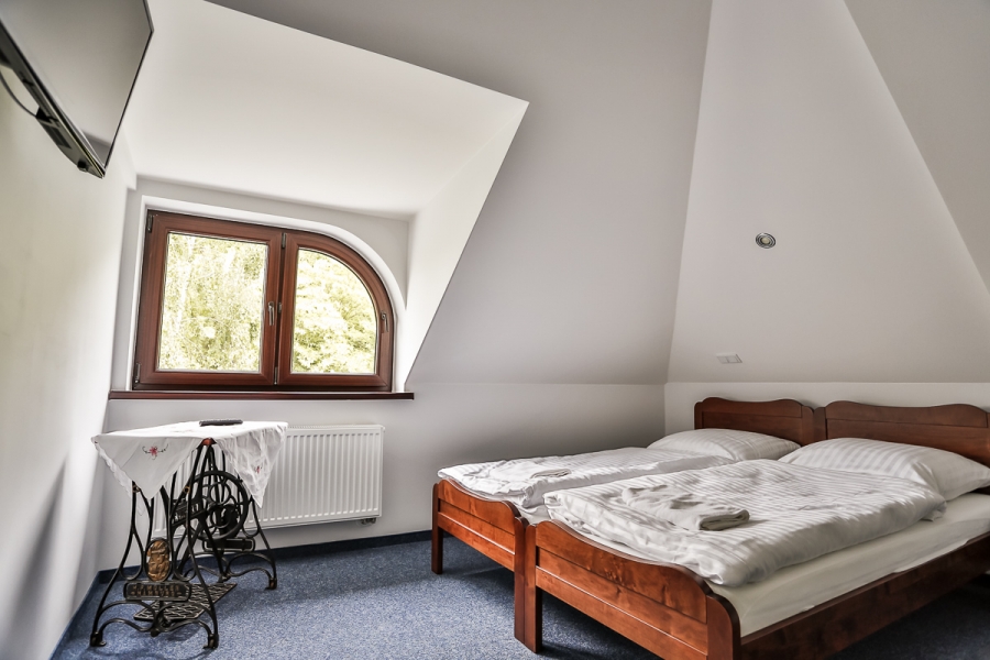 Pensjonat „W Starym Młynie” to 8 pokoi 2-osobowych oraz apartament 2 - pokojowy przeznaczony dla 4 osób. Trzy pokoje znajdują się w części dawnego młyna parowego, powstałe w 2006 roku wraz z otwarciem restauracji, zostały one całkowicie zmodernizowane w roku 2015 zachowując elementy stylu secesyjnego, charakterystycznego dla wnętrza restauracji. W nowej części znajdują się apartament oraz 5 pokoi. Ich wnętrza skłaniają się ku nowoczesności, są bardzo przestronne, ale zarazem przytulne. W pokojach zachowane zostały elementy stylu secesyjnego charakterystycznego dla całego obiektu, jednak tym razem zostały one jedynie delikatnie zaakcentowane w meblach stanowiących wyposażenie pokoju. W pokojach znajdują się telewizory 32” Samsung, klimatyzacja oraz swobodny dostęp do internetu wifi jak i połączenie kablowe do każdego pokoju. Dla gości pensjonatu oferujemy posiłki opcjonalnie śniadanie lub na zamówienie obiady, kolacje lub obiadokolacje. * Wygodne przestronne łóżka * noclegi ze śniadaniem (opcjonalnie) restauracja dla gości pensjonatu na miejscu * dostęp do sali konferencyjno - bankietowej . miejsce do grillowania wraz wiatą* miejsce idealne na spotkania biznesowe jak i okolicznościowe uroczystości rodzinne!