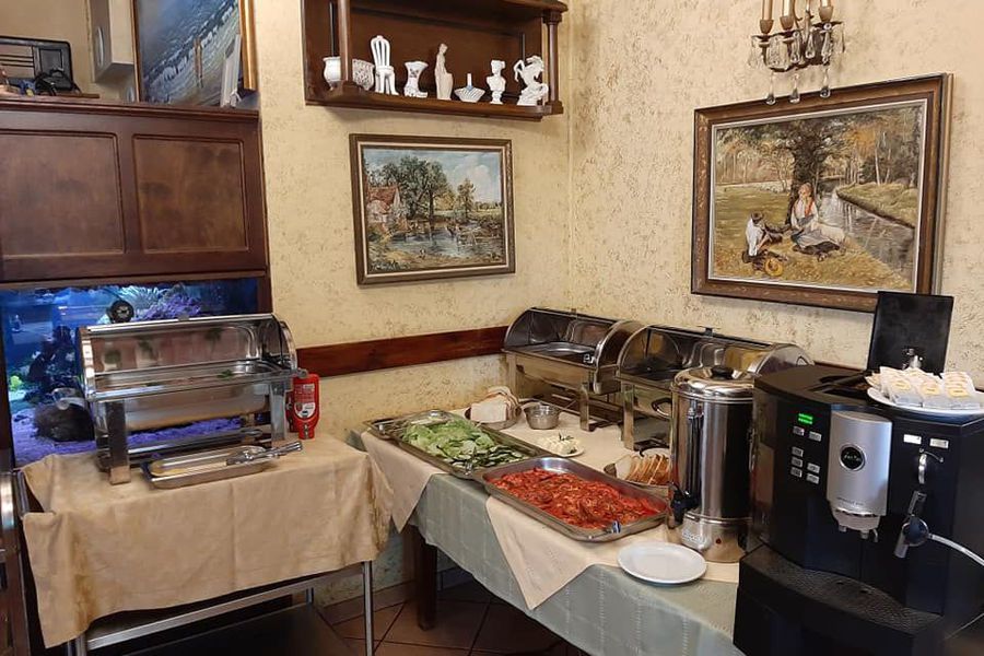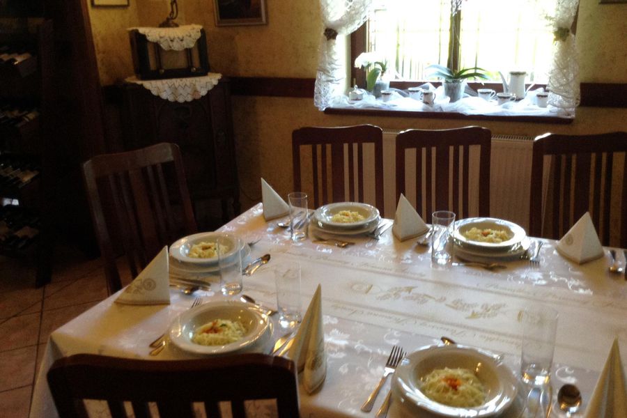 TAK opcjonalnie śniadania. Obiady i kolacje dostępne w Restauracji w tym samym obiekcie na zamówienie. Kuchnia autorska właścicielki Pensjonatu w programie potrawy z produktów lokalnych jak między innymi z karpia milickiego. Personal uczestniczył w warsztatach z przygadywania potraw z ryb słodkowodnych.