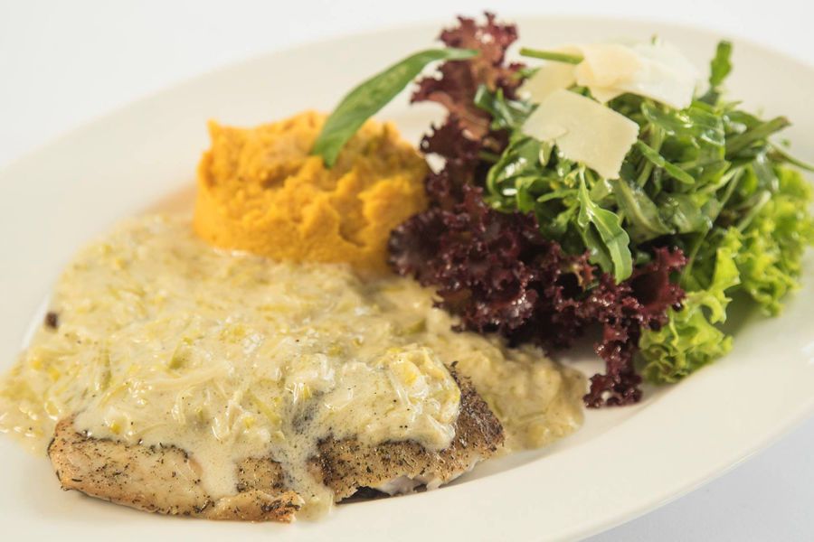 Amur w sosie selerowo- koperkowym oraz karp w sosie porowym