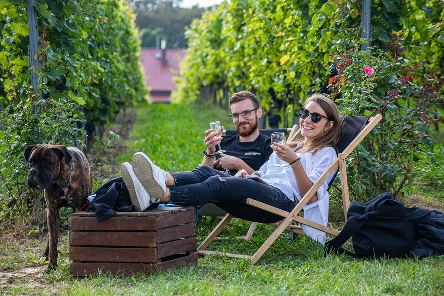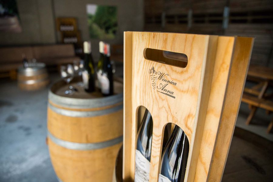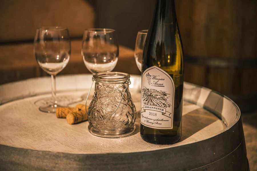 W Winnicy Anna produkujemy wytrawne wina białe i czerwone z pięciu szczepów: Solaris, Johanniter (wina białe) oraz Rondo, Regent, Cabernet Cortis (wina czerwone). Od 2020 roku wzbogaciliśmy ofertę o dwa kolejne szczepy: Chardonnay oraz Pinot Noir, natomiast od maja 2021 roku produkujemy też cydr z naszych jabłek. Absolutną nowością od grudnia 2022 roku jest nasze wytrawne wino musujące typu "brut" stworzone przez nas tradycyjną metodą leżakowania na osadzie. Starannie wyselekcjonowane grona oraz owoce zbieramy ręcznie i delikatnie układamy w skrzyniach, wszystko po to, żeby do winiarni dostarczyć nieuszkodzony półprodukt. Aby wino było naprawdę dobre, zebrane grono musi być całe. Te uszkodzone wyrzucamy. Tylko starannie zebrane grona oraz owoce nadają smak i jakość wina. Południowe nachylenie stoków, szczepy dobrane do klimatu Doliny Baryczy oraz dbałość włożona w produkcję wina sprawiają, że wina z Winnicy Anna są wysokiej jakości i są cenione. Podczas III święta Sera i Wina we Wrocławiu, które zorganizował Wrocławski Uniwersytet Przyrodniczy i Urząd Marszałkowski, nasz Cabernet Cortis został uznany za najlepsze wino w kategorii wina czerwonego. Na VI święcie Sera i Wina w 2019 roku nasze białe wina Solaris i Johanniter z rocznika 2018 zdobyły pierwsze miejsce. Z kolei czerwone wino Rondo zostało nagrodzone brązowym medalem na VI Konkursie Polskich Win Jasło 2019. 22 września 2019 roku nasze wina Johanniter (2018) oraz Solaris (2018) zdobyły I miejsce w konkursie na najlepsze wino w kategorii win białych podczas VI Święta Sera i Wina. W Dolinie Baryczy naszych win można spróbować w: w hotelu Naturum w Rudzie Sułowskiej, restauracji Teo w Cieszkowie, restauracja U Bartka w Średzinie, restauracji Gospoda 8 Ryb w Rudzie Sułowskiej, w Karczmie Rybnej w Rudzie Żmigrodzkiej, restauracji Hubertówka w Nowym Zamku, restauracji Ptasia Osada w Joachimówce, restauracji Górecznik w Przygodzicach. Polecamy też punkty na mapie Wrocławia, w których na półkach znaleźć można nasze wina. Pełna lista dostępna na stronie: http://www.winnica-anna.pl/?wina Nowością na terenie Winnicy Anna są wydarzenia pod nazwą "(Nie)winne leżakowanie", które proponują enoturystom możliwość posmakowania wina z naszej winnicy w pięknych okolicznościach przyrody. Degustacje odbywają się w nowoczesnej winiarni oddanej do użytku w 2021 roku. Organizujemy tam także całoroczne degustacje naszych win połączone ze zwiedzaniem całego gospodarstwa, trzeba się tylko wcześniej na nie umówić telefonicznie (607 428 315) lub mailowo (biuro@winnica-anna.pl). Polecamy także degustację win połączoną z różnego rodzaju szkoleniami, konferencjami oraz warsztatami. W przestronnych wnętrzach naszej nowej sali lub w dotychczasowym klimatycznym pomieszczeniu można zorganizować event, który może zakończyć się wspólnym smakowaniem naszych wybornych trunków. Win z Winnicy Anna można spróbować także podczas imprez okolicznościowych, które od sezonu 2021 można już organizować w naszej winnicy. W nowym budynku winiarni stworzyliśmy miejsce przyjazne dla większej grupy osób, które idealnie nadaje się na małe wesele, urodziny, lecie ślubu, chrzciny czy inne rodzinne spotkanie. Zaproś znajomych na wspólny wieczór z naszymi winami.
