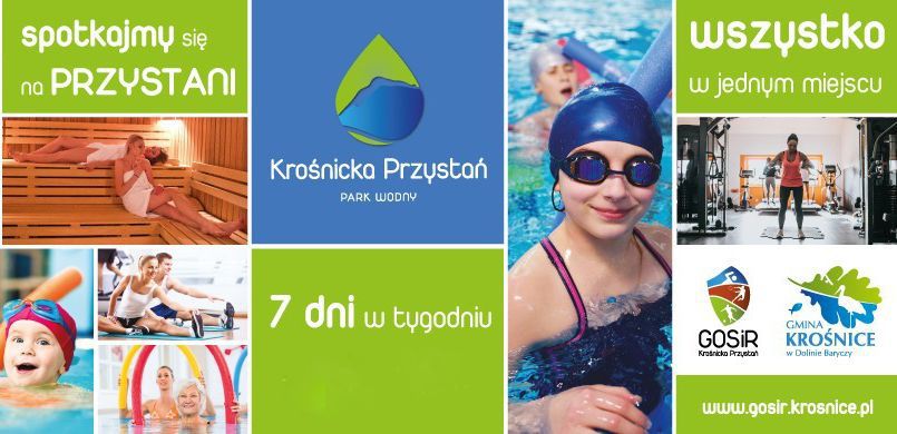 Park Wodny „Krośnicka Przystań” położony jest w centrum Krośnic. „Krośnicka Przystań” to pływalnia z ruchomym dnem, której otwarcie nastąpiło w sierpniu 2015 r. Basen w Krośnicach jest jedynym na Dolnym Śląsku basenem z ruchomym dnem. W obiekcie mieszczą się dwie pływalnie: rekreacyjna, która wyposażona jest w zjeżdżalnię rurową, zjeżdżalnie typu lejek (cebula), masaże wodne i bicze , jacuzzi, a także pełnowymiarową 25-metrową pływalnię z 6 torami, w tym 3 tory o głębokości stałej 2 m oraz 3 tory wyposażone w ruchome dno. Została również wydzielona część dla najmłodszych klientów – jest nią brodzik wyposażony w atrakcje wodne. Obok brodzika znajduje się pokój dla matki z dzieckiem. Część basenu, która została wyposażona w ruchome dno sprawia, że basen zmienia się w nieckę, dzięki której można zastosować wielofunkcyjność i regulację głębokości dna, przez co można prowadzić większą liczbę zajęć wodnych dla ludzi w różnym wieku oraz dla osób niepełnosprawnych, jak i dzieci. Na pierwszym piętrze hali basenowej znajdują się trybuny, które wyposażone są w miejsca siedzące dla 150 osób. Obiekt pływalni umożliwia naukę pływania dla dzieci i dorosłych, jak również zajęcia fitness, zumba. Ponadto w Parku Wodnym można skorzystać z saunarium z tarasem zewnętrznym, oraz siłownią.