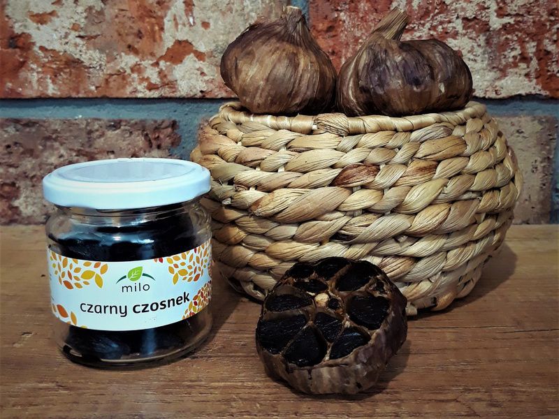 Czarny czosnek jest wynikiem poddania świeżego białego czosnku długotrwałemu procesowi dojrzewania w ściśle określonej temperaturze i wilgotności. W procesie fermentacji czosnek traci ostry smak, zyskując nowy lekko słodkawy z nutą wędzonej śliwki i moreli. Dzięki wysokiej zawartości przeciwutleniaczy ma bardzo korzystny wpływ na nasze zdrowie, dbając o układ krążeniowy, trawienny i odpornościowy. Czarny czosnek ma wszechstronne zastosowanie jako dodatek do do sałatek, mięs, dipów, sosów, ciast itd. Niewielka ilość dodana do sosu lub sałatki zmienia smak potraw nadając im zupełnie nowego, głębokiego smaku. W swojej ofercie posiadamy czarny czosnek w postaci ząbków oraz wygodnej pasty- w sam raz na kanapkę ;)