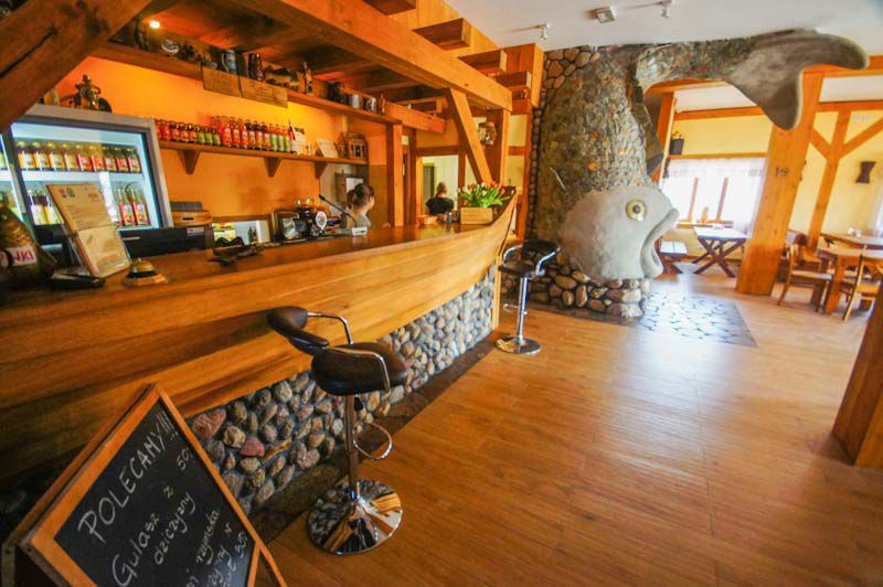 Dwupoziomowa KARCZMA RYBNA w Rudzie Żmigrodzkiej usytuowana jest w otoczeniu malowniczych stawów karpiowych, tuż przy łowisku wędkarskim i zagrodzie z danielami. Od niej bierze także początek i koniec 3-kilometrowa ścieżka przyrodnicza, biegnąca groblami stawów. Obiekt wyróżnia się regionalną architekturą, klimatycznym a zarazem kameralnym wnętrzem oraz bogactwem smaku prosto z natury! Nasza kuchnia specjalizuje się głównie w potrawach z ryb słodkowodnych, z karpiem milickim w roli głównej. Większość ryb, które trafiają na talerze Gości, pochodzi z rodzinnego gospodarstwa rybackiego państwa Raftowicz. Ponadto potrawy w karczmie przygotowywane są na bazie zdrowych i naturalnych produktów, prosto od lokalnych producentów z Doliny Baryczy. W menu naszej Karczmy znajduje się m.in.: autorska zupa rybna Szefowej Kuchni, smażony karp milicki, amur, sandacz, sum, szczupak i wiele innych potraw z ryb. Sezonowo dostępny jest też nasz karp milicki wędzony, wielokrotnie nagradzany na konkursach kulinarnych. U nas napijesz się dobrej kawy oraz zakosztujesz aromatycznego ciasta naszego wypieku, a w sezonie serwujemy pyszne lody rzemieślnicze.