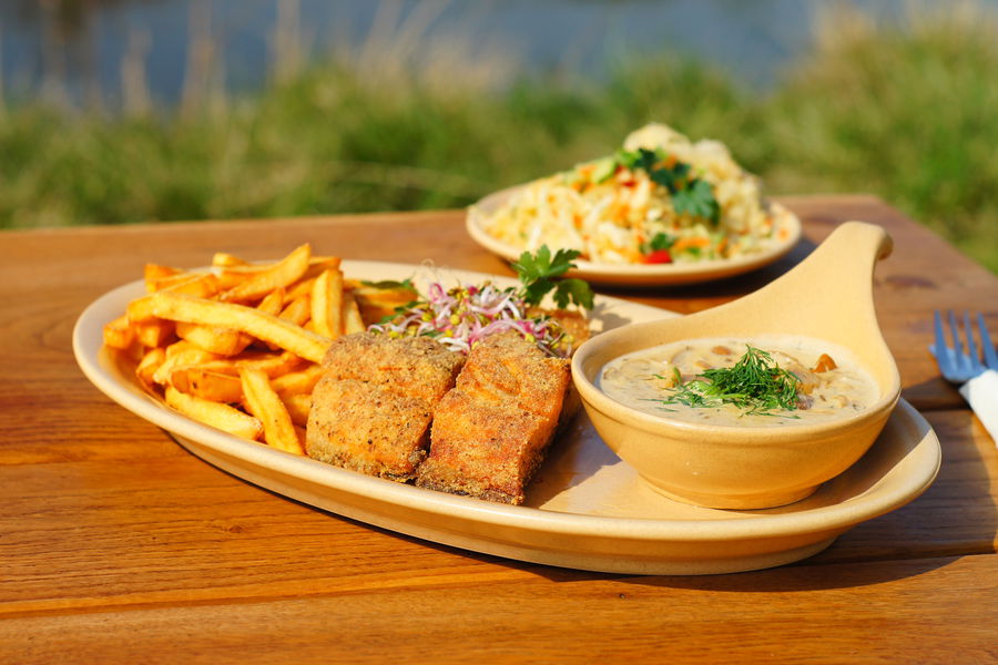 To co nas wyróżnia to przede wszystkim prosta i tradycyjna kuchnia rybna, zdrowe i ekologiczne surowce i półprodukty oraz krótkie łańcuchy dostaw. Nasze menu bazuje w zdecydowanej mierze na produktach pochodzących z Doliny Baryczy, opatrywanych często certyfikatem "Dolina Baryczy Poleca". Na szczególną uwagę zasługują tu ryby trafiające na Państwa talerze, których źródłem pochodzenia jest hodowla w naszym rodzinnym Gospodarstwie Rybackim "Ruda Żmigrodzka", kultywująca tradycyjne i ekologiczne metody produkcji karpia milickiego. W 2020 roku nasza Karczma Rybna dołączyła do Europejskiej Sieci Regionalnego Dziedzictwa Kulinarnego, której misją jest zachowanie i rozwój regionalnych tradycji kulinarnych charakterystycznych dla danych regionów, promocja lokalnych i regionalnych produktów spożywczych oraz rozwój drobnej przedsiębiorczości i turystyki w regionach. W 2021 roku nasza Karczma Rybna zdobyła 1 miejsce w prestiżowym Konkursie MISTRZ KARPIA w kategorii "potrawa z karpia" za nasze PIEROGI z farszem z karpia wędzonego. Nasze motto to SMACZNA i ZDROWA RYBA w DOBRYM KLIMACIE!