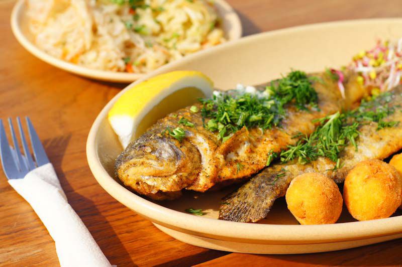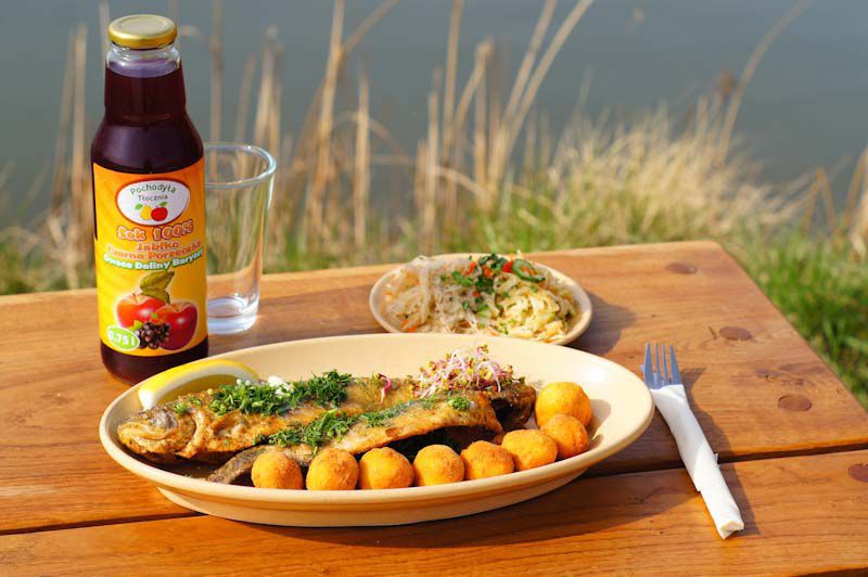 * Smażony karp milicki podawany na 2 sposoby: tradycyjny z cebulką, w zestawie z frytkami i surówkami ("Karp Milicki") lub w wersji z sosem grzybowym ("Rybka spod grzybka"). * Zupa rybna - jedyna w swoim rodzaju, bogata w składniki, sycąca i często opatrywana komentarzem naszych klientów: "Jeszcze tak dobrej zupy rybnej nie kosztowaliśmy" ;-) *Wyjątkowo docenianym przez Klientów produktem jest również nasz KARP MILICKI WĘDZONY bazujący na tradycyjnej recepturze naturalnego wędzenia. W roku 2007 otrzymaliśmy za niego "Perłę" w konkursie "Nasze Kulinarne Dziedzictwo" na Międzynarodowych Targach Polagra w Poznaniu. Z kolei w 2016 roku zdobyliśmy główną nagrodę w konkursie "Najlepszy Smak Dolnego Śląska 2016" w kategorii ryby w ramach festiwalu "Europa na widelcu". Natomiast w 2020 roku otrzymaliśmy dla niego znak Dziedzictwa Kulinarnego Dolny Śląsk w ramach Europejskiej Sieci Dziedzictwa Kulinarnego. Wszystkie wymienione tu potrawy bazują na rybach pochodzących z Gospodarstwa Rybackiego w Rudzie Żmigrodzkiej, co więcej nasze karpie milickie są rok rocznie opatrywane certyfikatem "Dolina Baryczy Poleca".