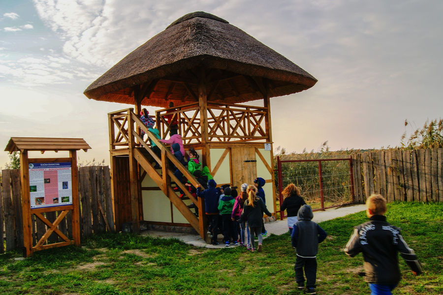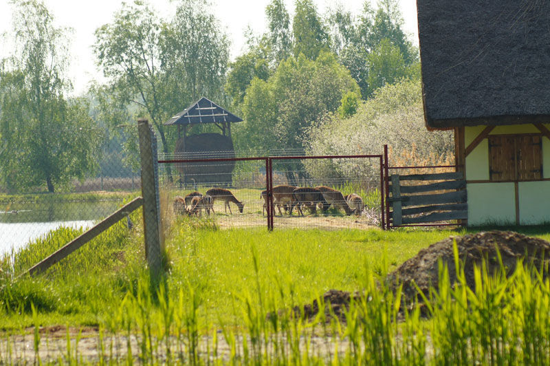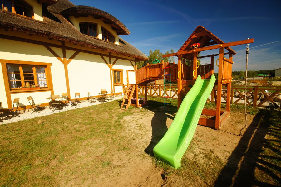 mini plac zabaw, przewodniki, ścieżka edukacyjna wokół stawu, zagroda z danielami