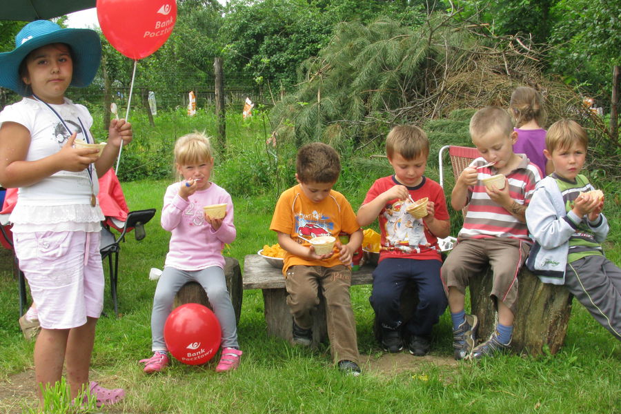 Oferujemy organizację imprez dla dzieci- urodzin, pikników, wycieczek przedszkolnych i szkolnych, w ramach których oferujemy przygotowane, przystrojone miejsce do zabaw, miejsce na ognisko i grilla, altanę w razie niepogody, wyposażoną kuchnię do dyspozycji, łazienkę z toaletą. W czasie pobytu dzieci oferujemy przejażdżki na koniach z możliwością robienia zdjęć. Dzieci mogą pomóc w przygotowaniu koni ucząc się czyścic i siodłać. Można również karmić stadko owiec. Do dyspozycji jest także duży, ogrodzony teren- idealny do zabaw i rozegrania meczu, trampolina. Możliwość urządzenia pikniku na łące nad Baryczą, do której prowadzi piękna droga przez las prosto z naszego terenu. W czasie wakacji możliwość zorganizowania dzieciom tygodniowych " wakacji na wsi"- z noclegami i wyżywieniem .