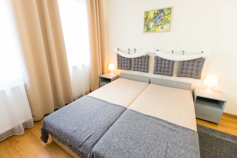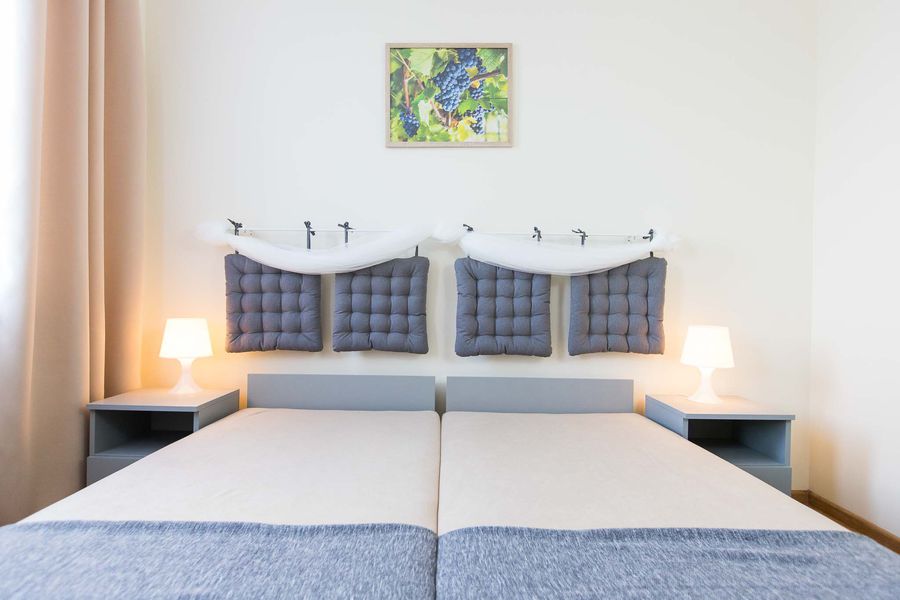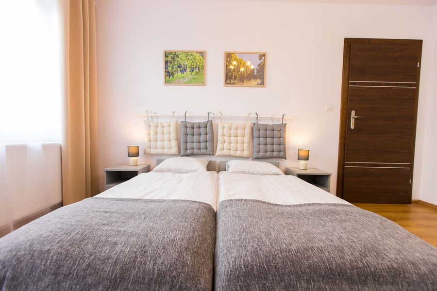 Zapraszamy do komfortowych pokoi w naszym gospodarstwie agroturystycznym oraz winiarni. Oferujemy 3 standardy wypoczynku: 1 apartament w winiarni, pokoje w standardzie wygodnym oraz regularnym. Wyposażenie i wystrój pokoi to pomysł naszej Gospodyni Beaty, która wykorzystała meble oraz inne elementy „z odzysku”, nawiązujące do uprawy winorośli i produkcji wina.