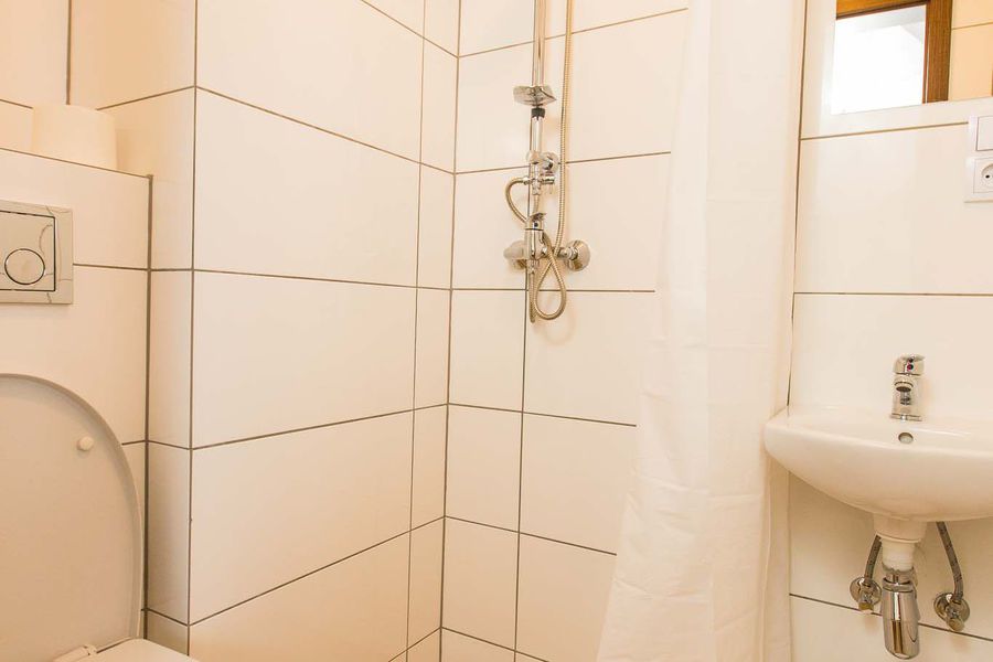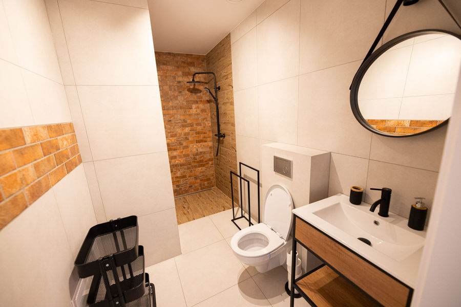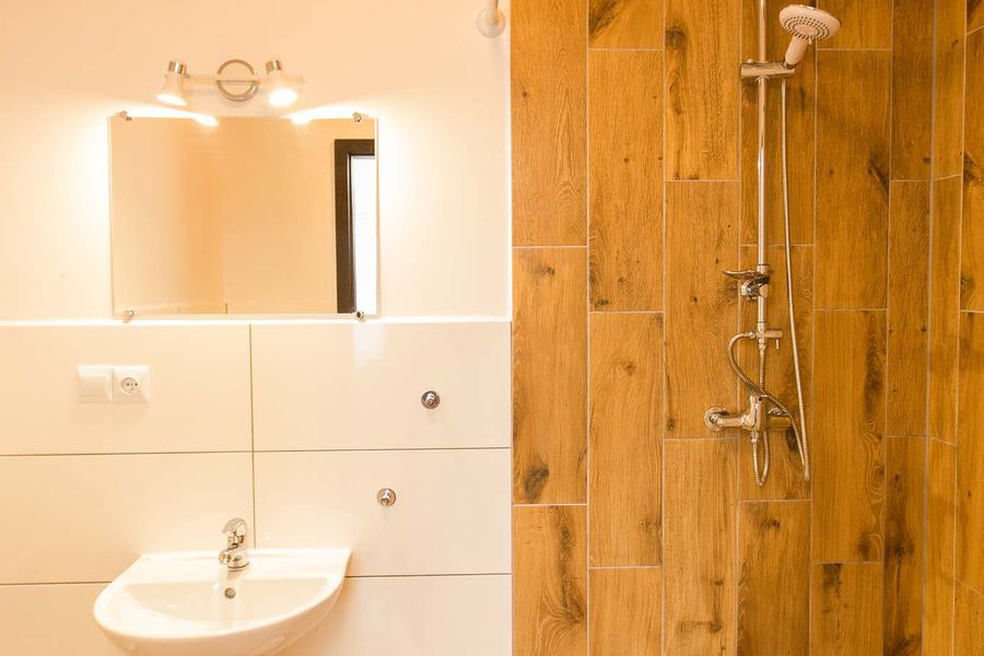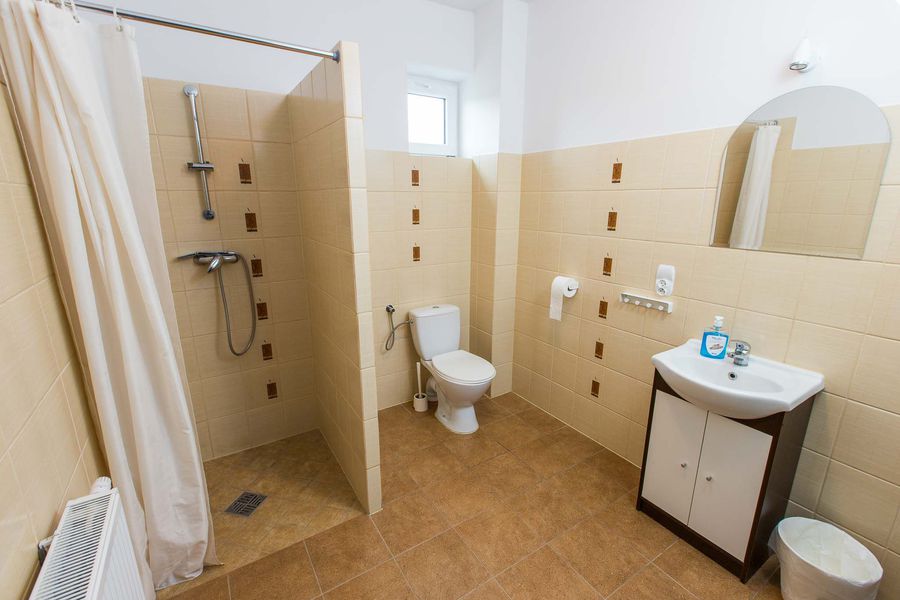 Osobna łazienka na potrzeby wypoczywających znajduje się w apartamencie w winiarni. Łazienki znajdują się w każdym pokoju na piętrze - w standardzie "Wygodnym" Wspólna łazienka znajduje się na parterze - w standardzie "Regularnym"