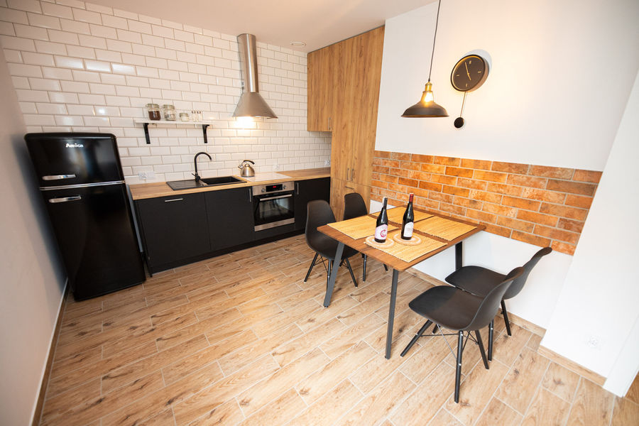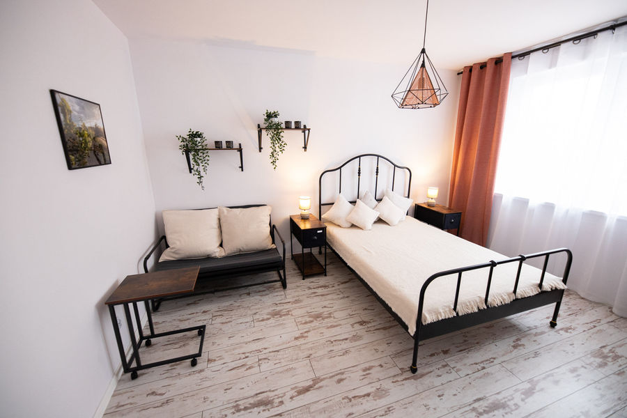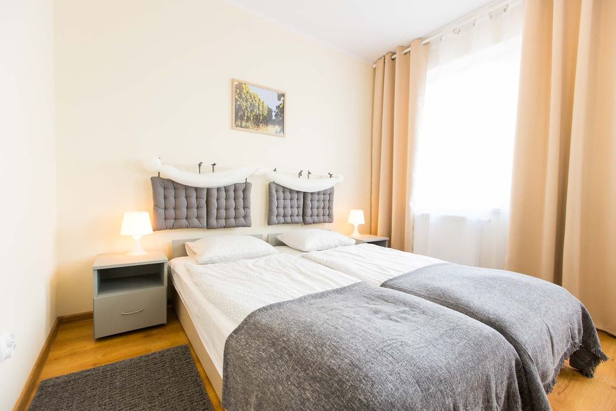 Wyposażenie apartamentu: podwójne łóżko, pościel z poszewkami, narzuty, szafki nocne, lampki nocne, telewizor LCD, bezprzewodowy dostęp do internetu, szafa duża na ubrania, Wyposażenie dodatkowego pokoju: łóżko, stolik nocny z lampką, krzesło Wyposażenie łazienki: prysznic, umywalka z lustrem, toaleta, szafka, papier toaletowy Wyposażenie pokojów dwuosobowych: podwójne łóżko, pościel z poszewkami, narzuty, szafki nocne, lampki nocne, bezprzewodowy dostęp do internetu, szafy duża na ubrania lub organizer na ubrania Wyposażenie łazienki: prysznic, umywalka z lustrem, toaleta, szafka, papier toaletowy