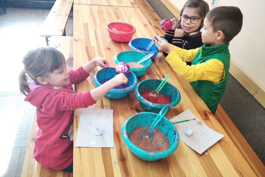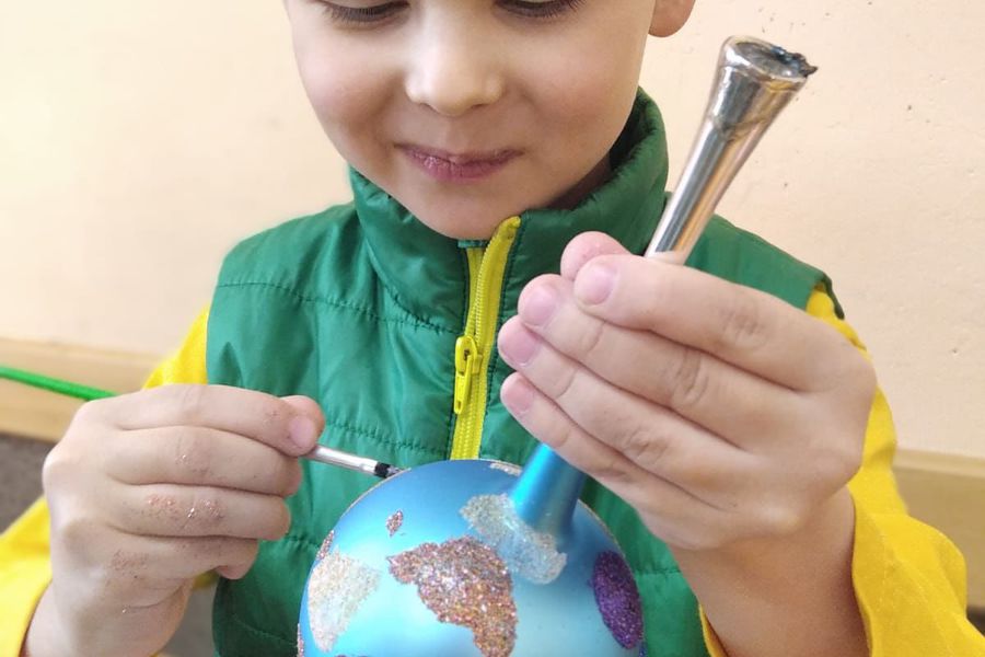 Oferta całoroczna, kierowana do uczniów szkół i przedszkoli oraz do zorganizowanych grup indywidualnych i rodzin z dziećmi. Indywidualna grupa musi składać się z min. 10 osób. Grupa przechodzi do sali mogącej pomieści ok 50 oś. Każdy uczestnik otrzyma bombkę o średnicy 8 cm, pędzelek, klej w pojemniczku oraz kolorowe brokaty. Nad porządkiem i bezpieczeństwem czuwa nasz pracownik, który wyjaśnia sposób dekorowania bombek brokatem. Pomalowaną bombkę uczestnik zabiera ze sobą do domu.