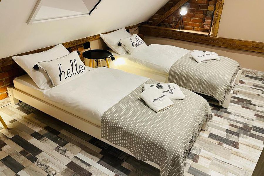 Dzięki naszej pasji do tworzenia, możemy zaprosić Was w to magiczne miejsce na „końcu świata”. Baryczanka to odrestaurowana stodoła oraz dom, w które tchnęliśmy drugie życie. Oderwij się od codzienności i poznaj niesamowitą Dolinę Baryczy. Spędź czas w otoczeniu pól i lasów. Niezależnie od pory roku ciesz się urokami otaczającej nas natury oraz atrakcjami, które przygotowaliśmy na terenie Baryczanki. Nasza stodoła to 150 metrowa przestrzeń przeznaczona dla maksymalnie 10 osób. Przygotowaliśmy dla Was 4 sypialnie 2-osobowe, dwa dodatkowe miejsca w salonie oraz 3 komfortowe łazienki z prysznicami. Parter stodoły to przestronny salon posiadający strefę wypoczynkową w postaci kanapy oraz wygodnych foteli gdzie spędzicie czas przy cieple kominka. Centralnym miejscem salonu jest dębowy stół przeznaczony dla 10 osób. Aneks kuchenny został w pełni wyposażony we wszystkie niezbędne akcesoria a także ekspres do kawy, opiekacz, piekarnik oraz zmywarkę. Na parterze stodoły znajduje się również główna sypialnia z łóżkiem małżeńskim oraz przynależną do niej łazienką z prysznicem. Domek Mała Italia 150-metrowa przestrzeń na którą składają się trzy sypialnie 2-osobowe, rozkładana kanapa w salonie, jedna łazienka z prysznicem oraz dwa pokoje kąpielowe z wannami. Czas wspólny spędzicie w przestronnym salonie wyposażonym w stół biesiadny, strefę wypoczynkową z kominkiem oraz w pełni wyposażony aneks kuchenny. Starannie dobra zastawa stołowa sprawdzi się idealnie przy organizacji klimatycznych przyjęć. W naszym ogrodzie czeka na Was: sauna, balia, ognisko, boisko do koszykówki, tarasy grillowe, rowery, leżaki, plac zabaw, gry plenerowe oraz bajeczny widok na las.