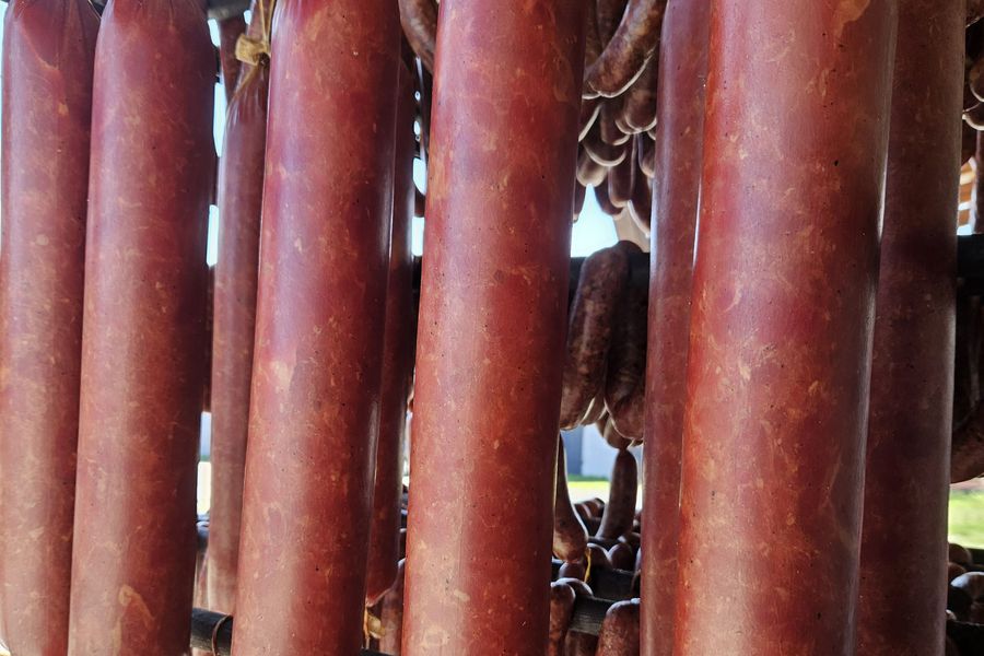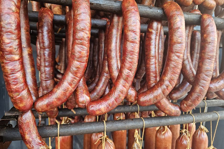 W naszej ofercie znajdziecie następujące produkty: - Kiełbasa wędzona z pasją - Kiełbasa ze świniobicia - Kiełbasa staropolska - Kiełbasa biała - Kiełbaski Tymka z drobiem - Kiełbasa podsuszana - Kiełbasa Artura myśliwska z jelenia - Kiełbasa Matuśka szynkowa - Kiełbasa krakowska - Kiełbasa surowa polska - Kabanos z czosnkiem niedźwiedzim - Parówka - Wędzona szynka, schab, polędwica, boczek - Wędzony surowy dojrzewający schab i szynka - Kaszanka z wątrobką - Kaszanka biała - Salceson - Pasztet wędzony - Pasztet Maksia w słoiku - Mięso po staropolsku w słoiku - Słoikowa z czosnkiem niedźwiedzim - Bigos Babci Mani - Fasolka Babci Mani Wędliny prosto z gospodarstwa! Nasze wyroby są w 100% naturalne, składają się z samego mięsa o przypraw z naturalnych ziół. Mięso na wędliny pochodzi z naszego gospodarstwa, gdzie chów prowadzimy metodą tradycyjną. O jakość wędlin dbamy już od samego początku- od upraw zbóż które są podstawą żywienia naszych zwierząt.
