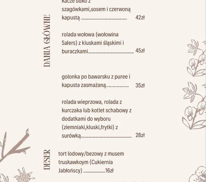 Sosnowa - organizacja imprez okolicznościowych oraz niedzielne domowe obiady serwowane zarówno na miejscu, jak i na wynos.