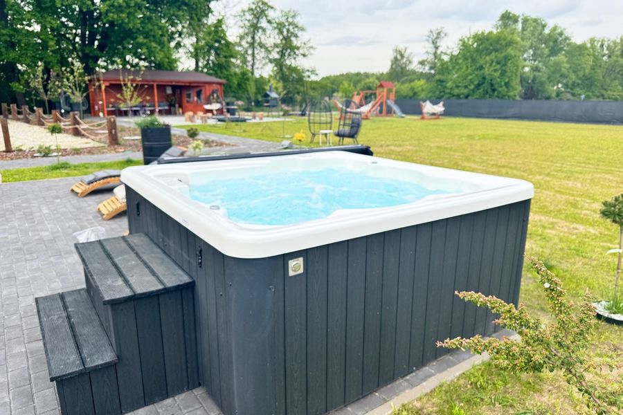 Oferujemy szereg atrakcji i udogodnień, które sprawiają, że pobyt w naszych apartamentach jest wyjątkowy i pełen relaksu. Każdy gość znajdzie coś dla siebie, niezależnie od tego, czy szuka aktywnego wypoczynku, czy pragnie się zrelaksować w otoczeniu natury. 1. Palenisko i wiata 2. Plac zabaw 3. Sauna 4. Jacuzzi 5. Basen 6. Strefa z leżakami 7. Boisko do siatkówki