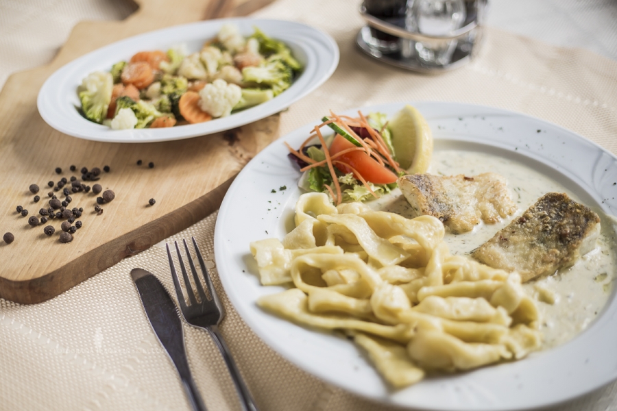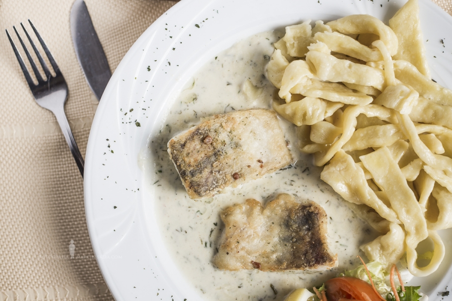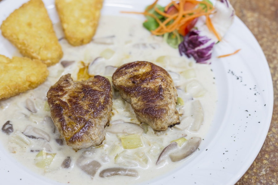 Potrawy regionalne: Karp w dzwonku lub filet delikatnie smażony solo lub w sosie kurkowym lub innym w zależności od sezonowości i dostępności świeżych surowców . Zupa krem z Karpia .