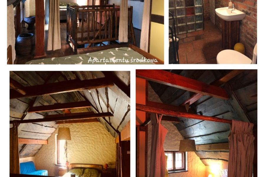 Apartamenty z kominkami i tarasami, pod ścianą lasu, dla dorosłych i dzieci starszych. Zapraszamy do nas tych z Państwa, którzy mieszkają w mieście ale kochają przyrodę, szukają z nią kontaktu a nie mogą, bądź nie chcą, wyprowadzić się z miasta na stałe. Proponujemy Państwu wypoczynek u nas w ciszy i spokoju, z dala od innych zabudowań wsi. Nasze Siedlisko położone jest w Dolinie Baryczy, w jej części dolnośląskiej tuż przy samej Wielkopolsce. Najbliżsi nasi sąsiedzi to las, sarny, żurawie i czaple. GDZIE CZYLI APARTAMENTY: Trzy komfortowe, dwupoziomowe apartamenty powstałe po podzieleniu w pionie byłego poniemieckiego budynku gospodarczego. Apartamenty różnią się między sobą jedynie oraz usytuowaniem części sypialnych (na piętrze) względem stron świata, stąd ich nazwy: Apt.Wschodni - okna w sypialni od str.wschodniej, Apt. Środkowy - zadaszona weranda w części sypialnej od str.południowej, Apt.Zachodni - okna w części sypialnej od str.zachodniej. Wszystkie apartamenty mają wejścia i tarasy oraz okna na parterze od strony południowej, z widokiem na łąkę i las. Tarasy i ogródki między apartamentami oddzielone są zielenią, co zapewnia prywatność. Zapraszamy serdecznie! ENGLISH:We offer accommodation for adults with children over the age of 7. Pets are welcome too! Żuraw and Czapla offer three apartments, each of the apartments is fully equipped. Each is rented as a whole, the rental price depends on the number of people living (max. 4) and the length of stay (details in the price list, please see www.wrobliniec.com or e-mail). Pre-bookings only. Welcome!