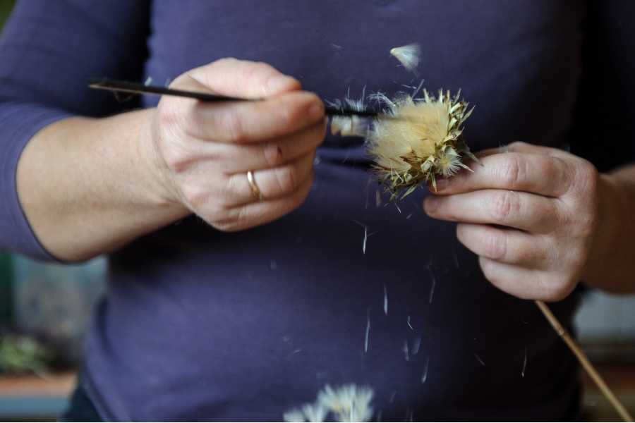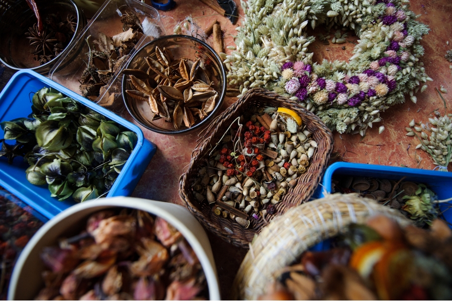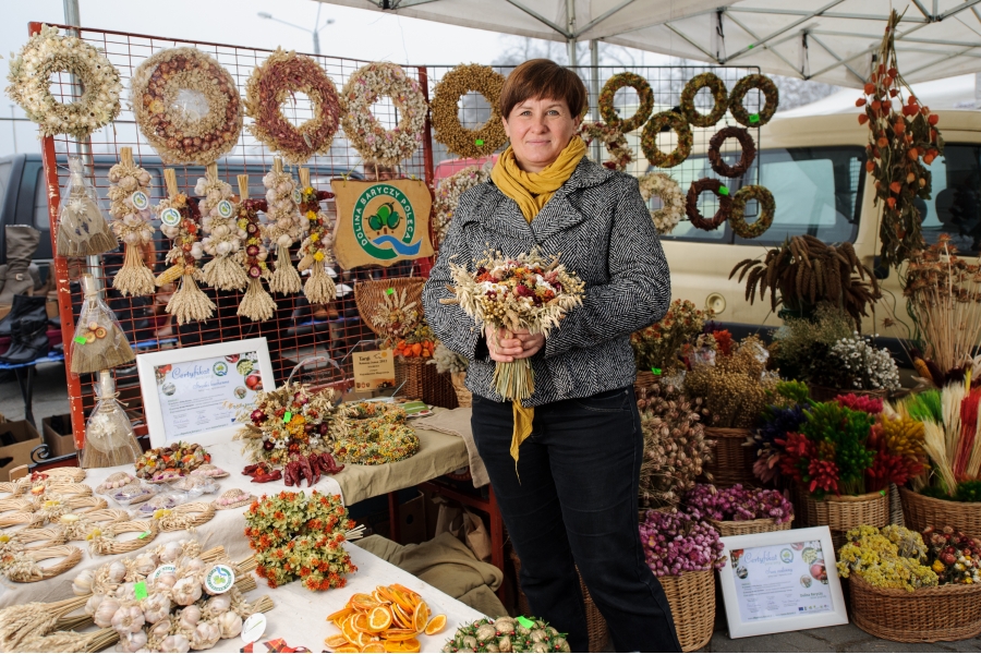 Nasze produkty powstają z roślin przez nas uprawianych lub pozyskiwanych na obszarze Doliny Baryczy. Wypracowana przez nas metoda suszenia pozwala zachować piękne naturalne kolory roślin. Szukanie wzorów we własnej wyobraźni przyczynia się do wyjątkowości naszych wianków , bukietów i stroików. Stoisko na którym wystawiamy nasze produkty jest zawsze pięknie wystylizowane : wiklinowe koszyki, stare szuflady, koronkowe i lniane obrusy, nasze stroje uszyte z naturalnego lnu - to wszystko przyciąga wzrok klientów. Klientów przyciąga również wykonywanie na ich oczach bukietów , kompozycji i wianków na głowę.